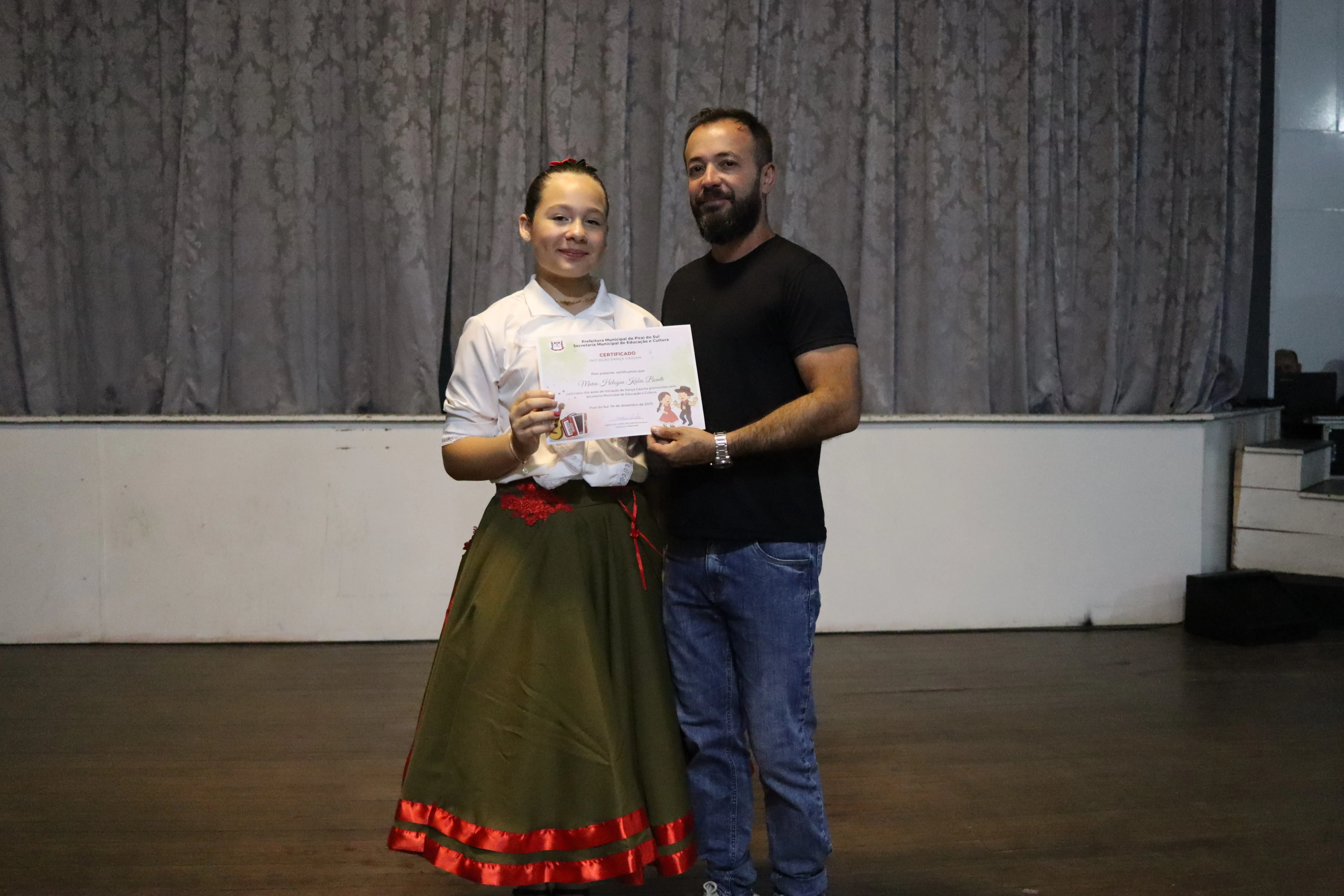 A PREFEITURA MUNICIPAL EM PARCERIA COM A SECRETARIA DE EDUCAÇÃO E CULTURA FEZ A ENTREGA DOS CERTIFICADOS DE INICIALIZAÇÃO DE DANÇA GAÚCHA AO ALUNOS DA REDE MUNCIPAL DE EDUCAÇÃO