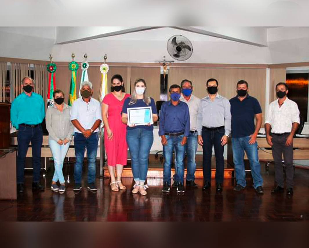 Giovana Simões enfermeira responsável pelo CTA/COVID recebe o quadro em nome dos profissionais homenageados. Os vereadores da Câmara Municipal de Piraí do Sul, concederam durante a sessão ordinária desta segunda-feira (15), uma Moção de Aplausos em homenagem aos profissionais de saúde do município que atuam na linha frente no combate à COVID-19, trabalhadores que têm se dedicado para conter o avanço da doença, desde o início da pandemia. Uma Moção de Aplauso é uma maneira de reconhecimento, prevista no Regimento Interno da Câmara, para se homenagear pessoas que de alguma forma se destacaram na comunidade. A homenagem foi apresentada pela vereadora Mariana Zadra, onde em um ato simbólico, os vereadores entregaram a moção à enfermeira Giovana Simões, do Centro de Testagem e Aconselhamento da COVID-19, numa demonstração de respeito e reconhecimento aos profissionais que há quase um ano levam a vida profissional quase que exclusivamente dedicada ao trabalho de prevenção e combate a COVID-19. “É necessário externar a solidariedade a todos que estão se expondo no combate à pandemia do novo coronavírus. Trata-se de um reconhecimento pela dedicação desses profissionais de saúde num momento tão difícil em que precisam se ausentar de suas casas, de suas famílias, para se dedicar a salvar vidas. O agradecimento se faz necessário como justo reconhecimento a uma luta incansável uma vez que cumprem jornadas extenuantes de trabalho, com alta carga de tensão emocional. Além disso testemunham de perto, como nunca antes em suas vidas, cenas pelas quais não imaginavam que veriam”, destaca a vereadora. Giovana, agradecida, relata: “foi uma honra receber esta homenagem essa noite na Câmara em nome de todos os meus colegas de trabalho que juntos batalhamos para vencer essa terrível pandemia. Continuaremos firmes nessa luta cumprindo com a nossa missão que é cuidar da saúde do nosso próximo.” Para o Secretário Municipal de Saúde, Julio Sandrini, “agradecer é a palavra de ordem, especialmente nesse momento difícil que atravessamos. Nossos profissionais de saúde estão desempenhando suas funções de forma hercúlea, realmente grandiosa nesse momento importante para toda a população.” “Esse reconhecimento da Câmara de Vereadores muito nos honra e em nome da Secretaria Municipal de Saúde agradeço imensamente essa homenagem aos nossos profissionais”, finaliza o Secretário. Categorias: Saúde,